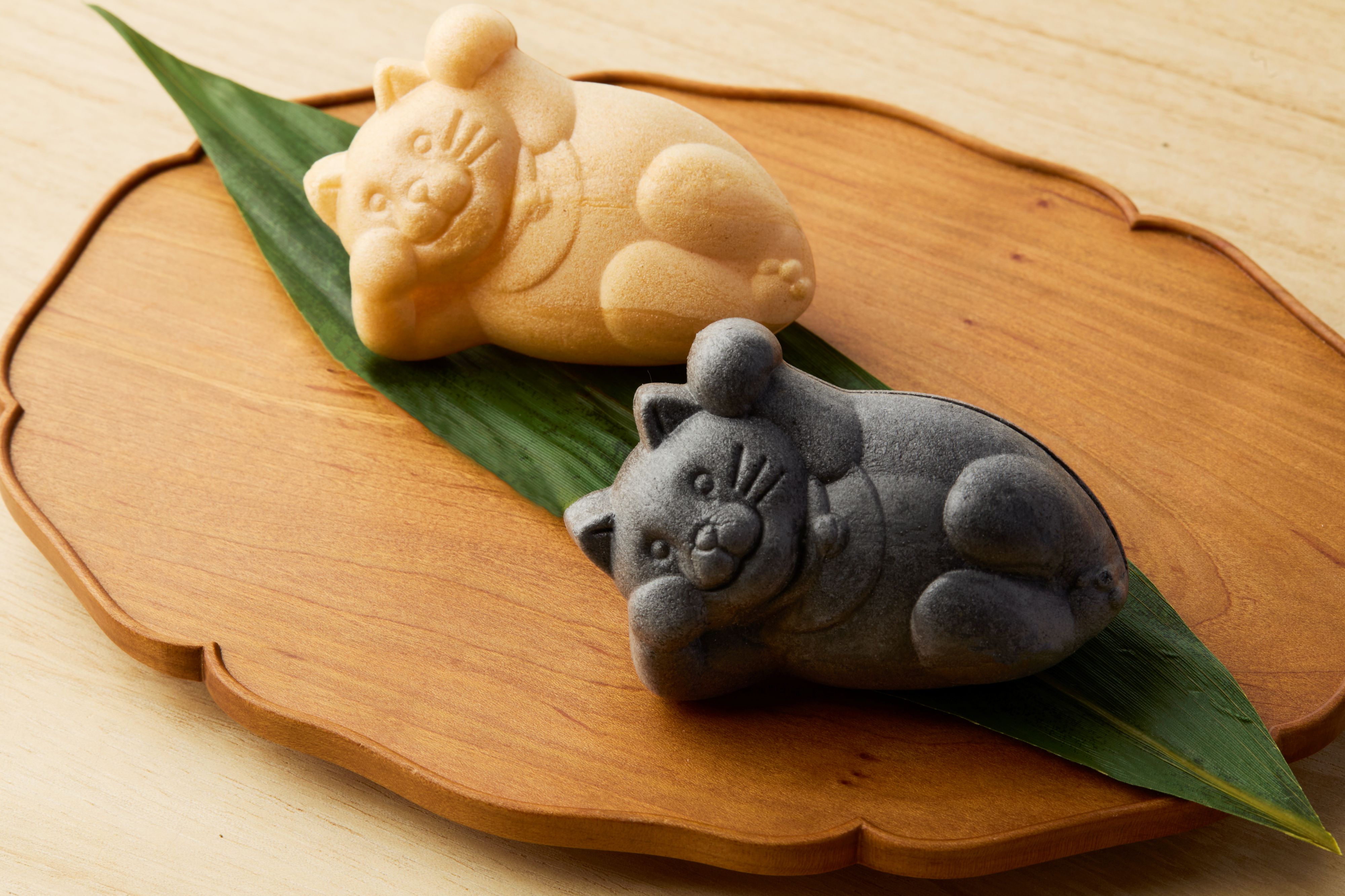 ぽっちゃり招き猫型の最中種(皮)は竹炭で黒猫に変身♪