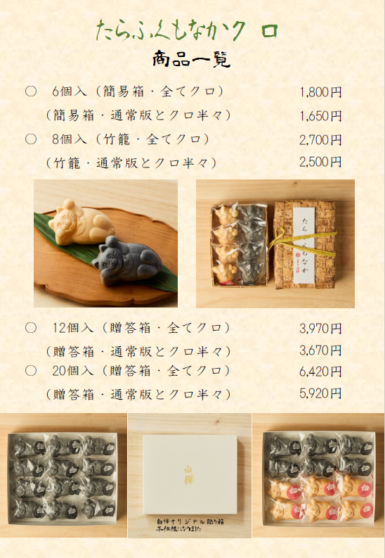 黒猫ちゃんと通常のたらふくもなかとのハーフセットにすると食べ比べができて、面白いですよ!